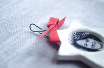 Po chvilce váhání co do volby materiálu zvítězil keraplast. Už jsem s ním měla nějaké předchozí zkušenosti a práce je to poměrně snadná, jako s těstem. Vyválet, vypichovátkem udělat tvary a nechat na vzduchu vytvrdnout. Já jsem ještě dělala důlek pro zasazení fotky. Pokud byste se rozhodli vyrobit si něco podobného, pak upozorňuji na školáckou chybu, které jsem se dopustila já (a vzhledem k tomu, že jsem maturovala z Betonu se za ni fakt stydím!) a musela jsem to dělat znovu: prvně si do vyválené placky vytiskněte důlek (já na to použila kelímek na párátka z Ikea, ale jde to jakýmkoli malým válečkem s rovnou ploškou) a TEPRVE POTOM si vypíchněte hvězdičku! Když to uděláte obráceně, i při sebevětší opatrnosti vám při vysychání v koutcích hvězdiček vzniknou trhliny. Pak jsem nechala několik dnů rozložené na plechu vytvrdnout.