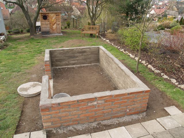 nachystání terénu, rozměření, vykopání základů, bednění, beton
