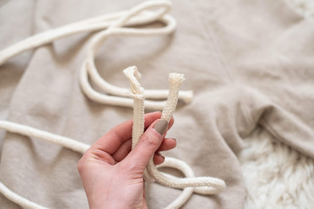 Na výrobu doma budete potřebovat jen mikinu, bavlněné lano s dutinkou a jehlu a nit.