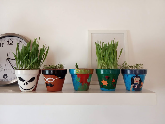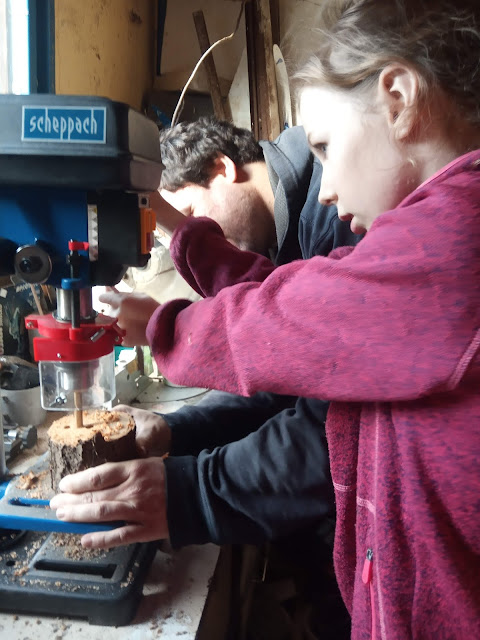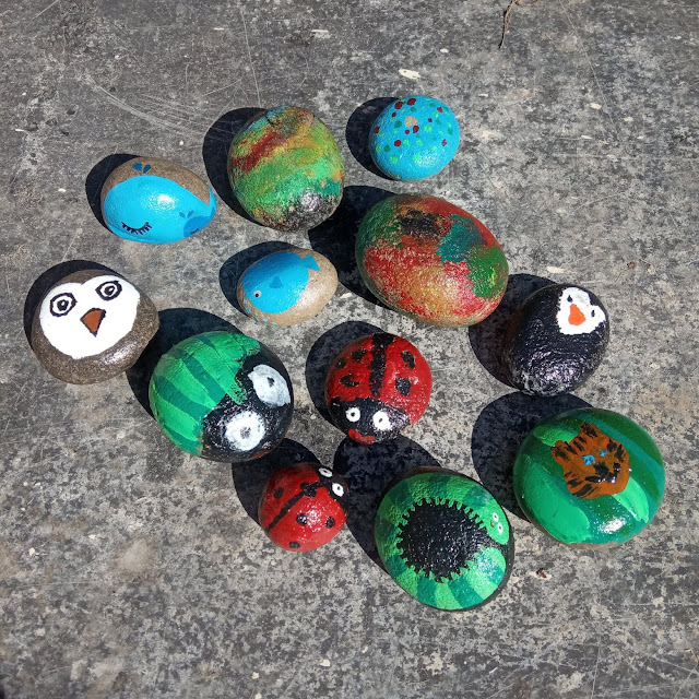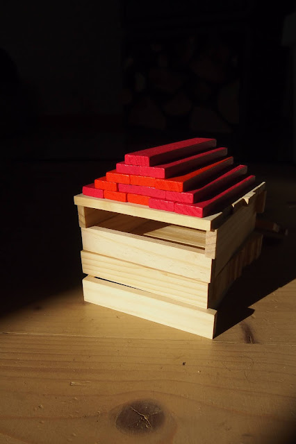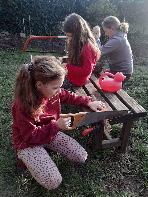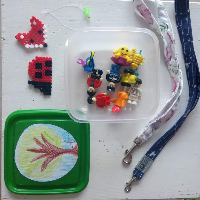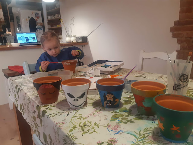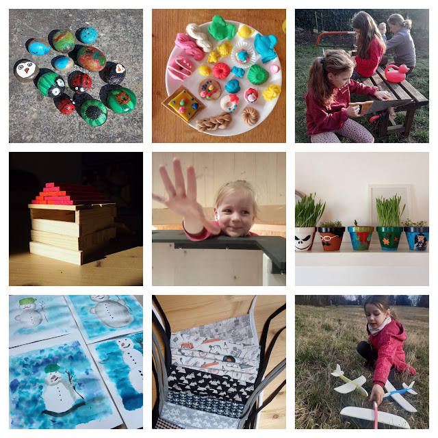Nejzajímavější část dne byla od čtyř hodin odpoledne, byla totiž nějaká společná aktivita. Plácali jsme plastelínu, zkoušeli pokusy podle videonávodu brněnského Vidacentra, malovali květináče, kamínky, malovali akvarelem a kávou podle Jitky Zajíčkové, jednou jsme dokonce na střídačku řezali a vrtali na zahradě - výsledkem byl hmyzí domeček. Nebo jsme jezdili na koloběžce, házeli letadly a stavěli Kapplu. Holky si vymyslely i krabičku s poklady na geocaching, včetně náplně, kterou teď vozíme s sebou na výlety.