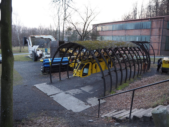 ... stroje jsou k prohlédnutí venku. Taky zajímavé. Hlavně ten prostor kolem strojů. Nedovedu si představit, že jsem někde v podzemí, kde je vedro, tma a strašný hluk ...