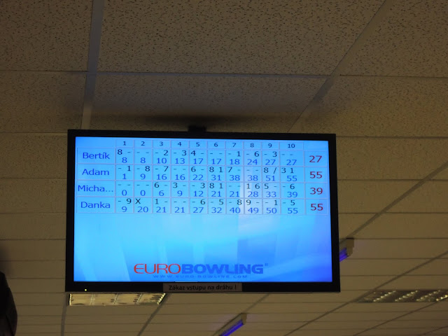 ... a bylo super. Nasmáli jsme se, fandili jsme a tleskali, hlavně když to šlo do žlábku místo na kuželky - teda nám s Adamem. Bertíkovi a Míše naopak, když to šlo na kuželky ...