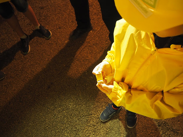 … tady jsme si všichni museli vzít přilby a pláštěnky a šlo se pod zem. Pláštěnka proto, že na nás stále kapala voda a za přilbu jsem byla hodně vděčná, protože jsem se asi jako jediná z naší skupiny dvakrát praštila do hlavy …