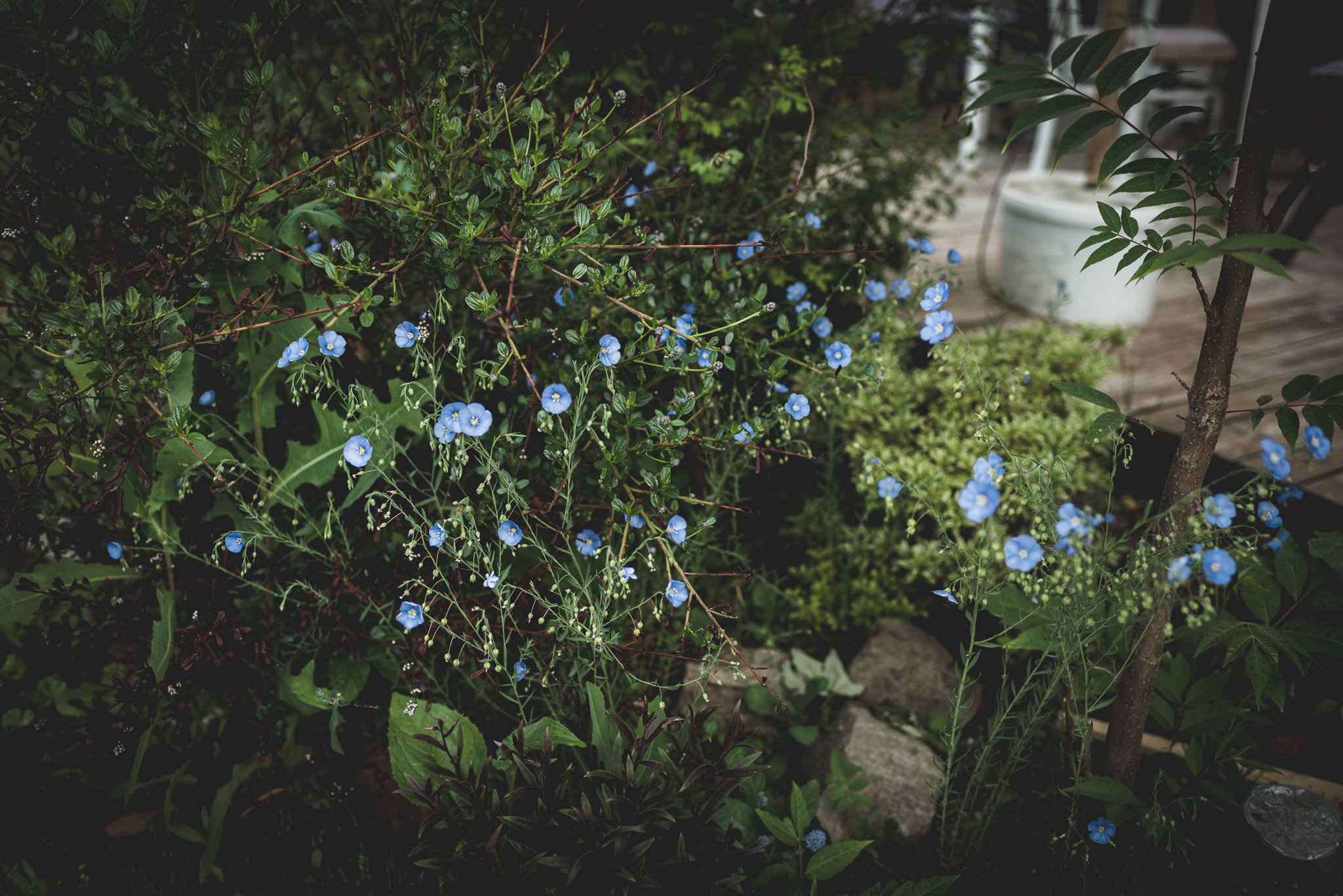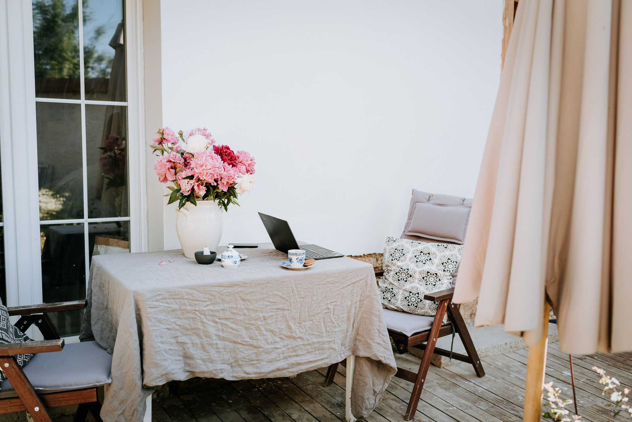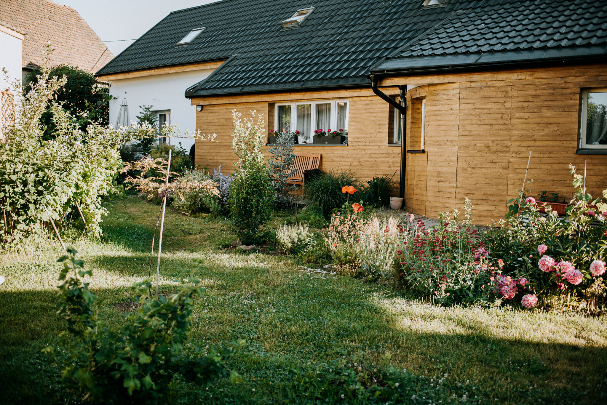 Zahrada si už žije svým životem. Plevelu se daří a na plné čáře vyhrává v zabírání zahrady. I když na část zakleknu, stejně na nově bující plevele koukám za týden zase. Never ending story. Aspoň mají slimáci co žrát. Před upadnutím do deprese a marnosti mě drží trvalky, keře a stromy. Radost jako z nového nákupu mám pokaždé, když najdu novou rostlinku tam, kde jsem ji nevysadila. Třeba taková mavuň, krásenka, verbena nebo kokarda. Šíří se po zahradě jako slimáci po dešti. Zaplňují prázdná místa a v létě to rozbalí naplno. Krásenky a verbeny jsou vysoké a vytvářejí vzdušné kvetoucí stěny. Postupně se k nim přidají lilie. Ale teď zrovna voní po celé zahradě zimolez a ve váze se smějí pivoňky.