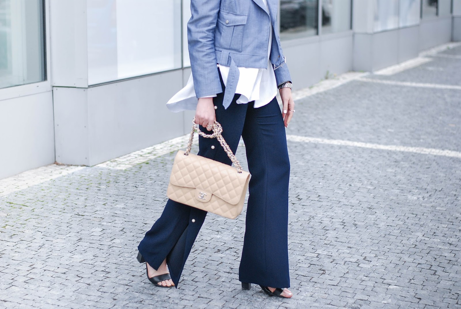 Karen Milen biker jacket, Lindex shirt, Zara pants, Mango sandals, Chanel bag