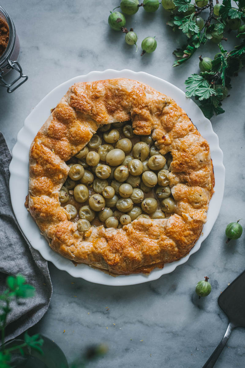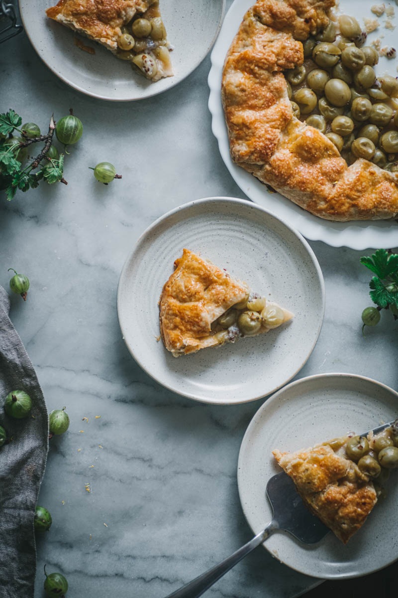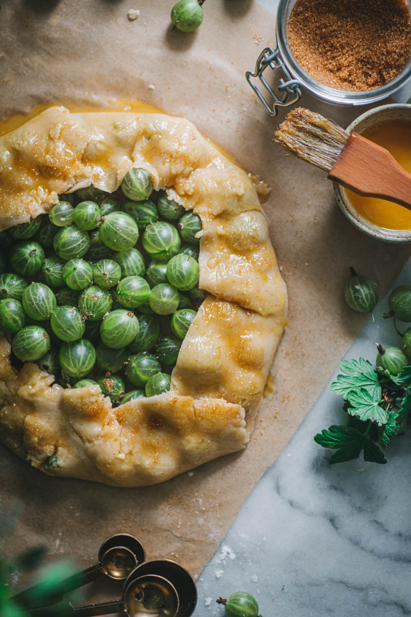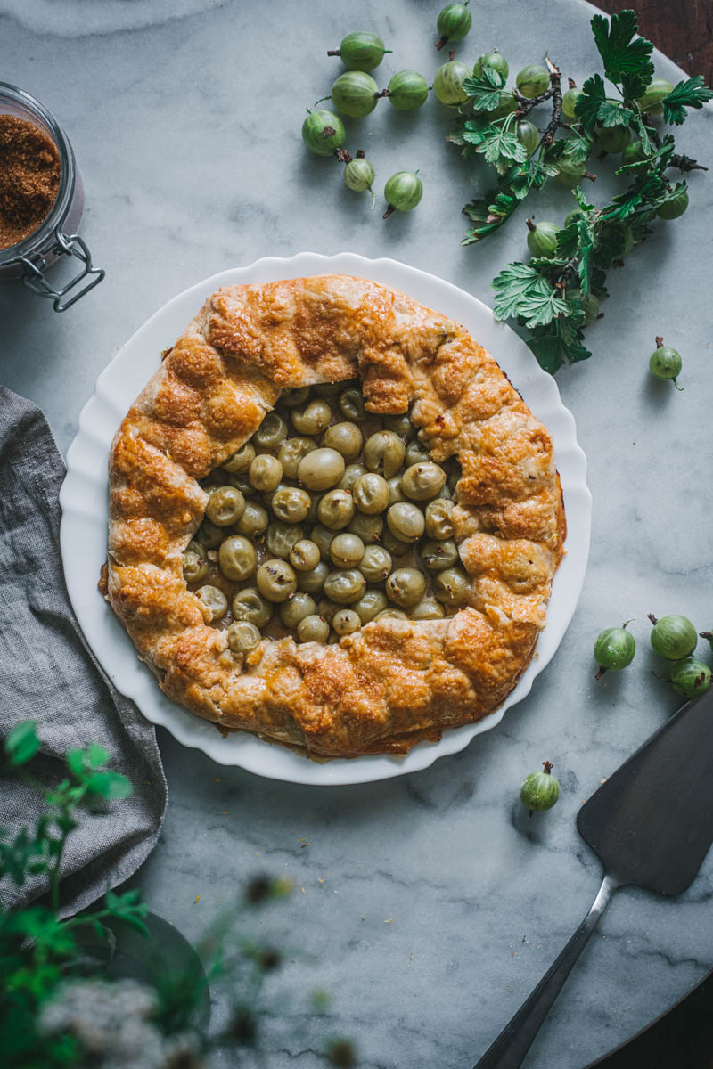 Rozhodla jsem se, že tentokrát upeču galetku. Používám na ni stále stejný osvědčený recept, který mě nikdy nezklamal. S těstem se moc dobře pracuje, obměňuju i mouku, cukr, přidávám koření. Angrešt jsem nijak zvlášť neupravovala, chtěla jsem zachovat jeho jemně nakyslou chuť, proto jsem nepřidávala ani další cukr.