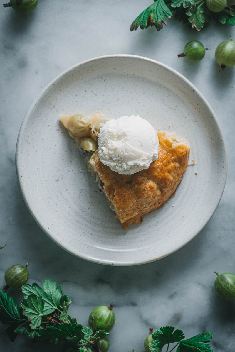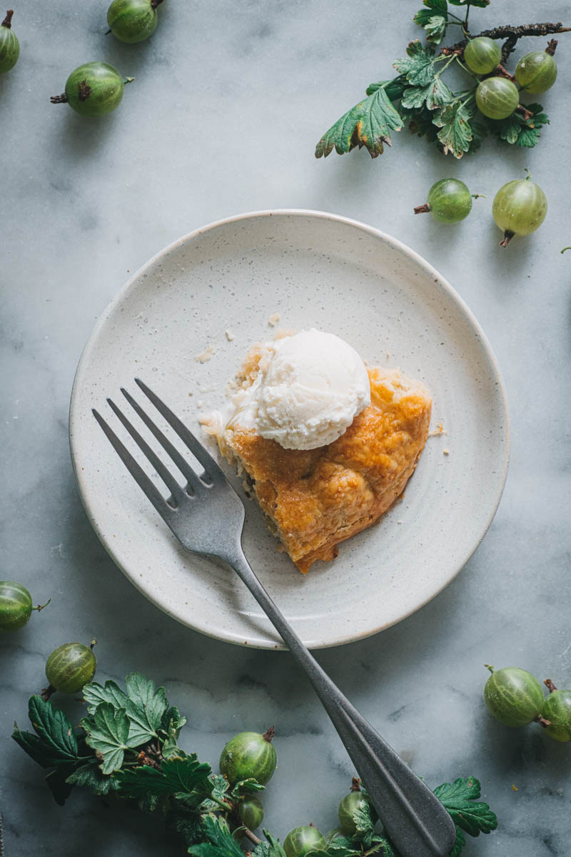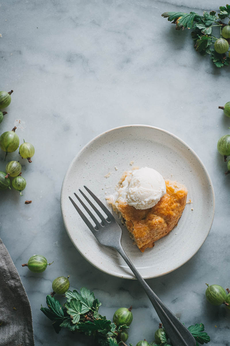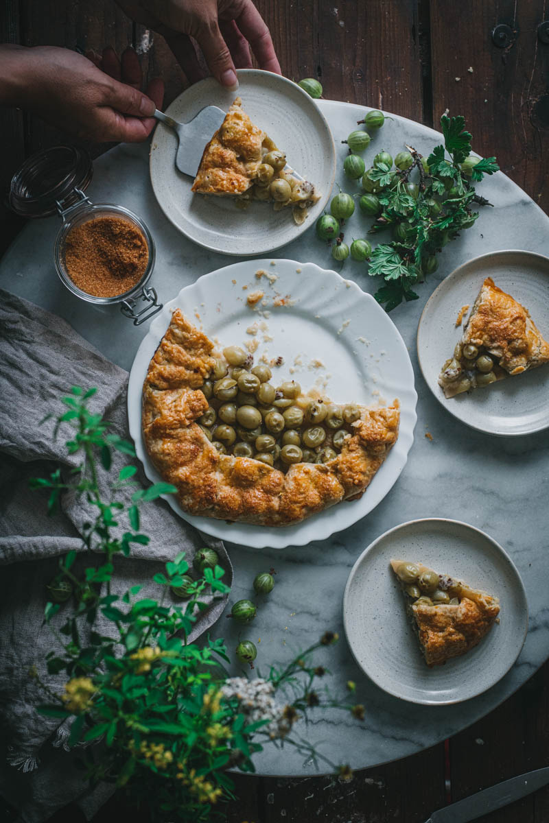 Rozhodla jsem se, že tentokrát upeču galetku. Používám na ni stále stejný osvědčený recept, který mě nikdy nezklamal. S těstem se moc dobře pracuje, obměňuju i mouku, cukr, přidávám koření. Angrešt jsem nijak zvlášť neupravovala, chtěla jsem zachovat jeho jemně nakyslou chuť, proto jsem nepřidávala ani další cukr.