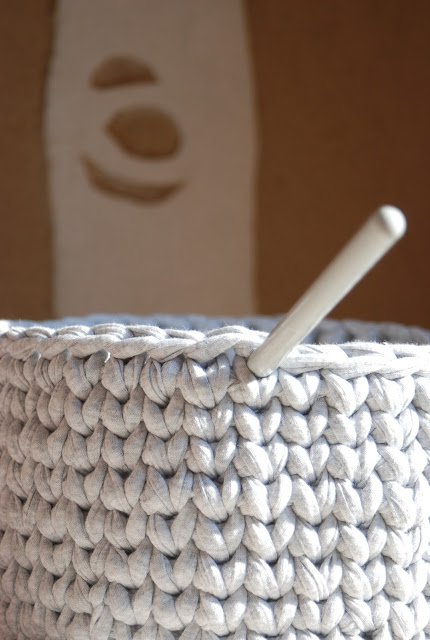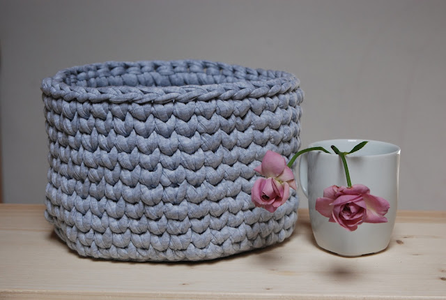 Pokud taky takový košík nutně potřebujete, háčkovala jsem háčkem 9mm takto: