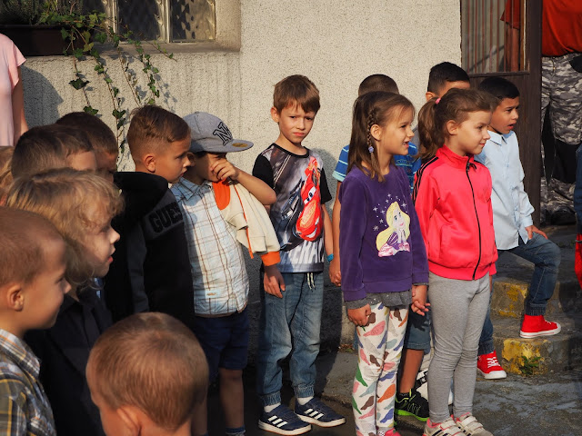 … běžně se mi stává, že já hlídám budík, aby nezaspal. Tentokrát jsem ho neslyšela. Jen jsem si na displeji mobilu přečetla „odložené zvonění“. To znamená, že zvonil, ale se mnou to ani nehnulo. Naštěstí zpoždění nebylo tak dramatické a nespěchali jsme na tramvaj. Jenomže. I když jsme jeli autem, vyjeli jsme později než jsme měli a do školy, do třídy jsme doběhli osm nula něco. Byli jsme poslední. Tohle nemám ráda :-(. Naštěstí se ale nic nestalo. Děti se přivítali s paní učitelkou, pak bylo slavnostní zahájení školního roku pro celou školu na hřišti a pak už jsme jenom čekali až ve třídě skončí …