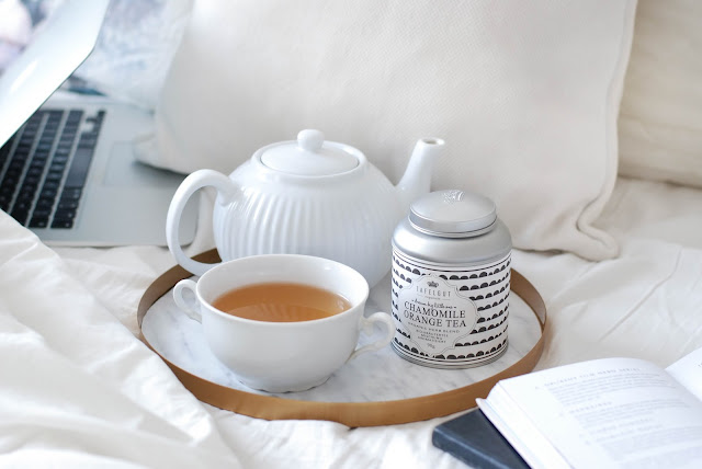V zime piju čaje nonstop. Když bydlíte ve starém bytě a nechcete platit majlant za vytápění plynem, topíte jen v těch místnostech, kde se zdržujete nejvíce. A tak pobíhám mezi studenou chodbou a vyhřátou ložnicí. Sice v ponožkách a dlouhém rukávu, ale ani to někdy nestačí. Čaje jsou moje záchrana a taky super alternatitva, když nemám chuť na obyčejnou vodu. Miluju bylinkové čaje. Zahřejí a zklidní před spaním. A když bych měla vybrat jeden, tak za mě jedině heřmánkový. Tenhle s heřmánkem a pomerančem od Tafelgut je sypaný, navíc v krásné dóze s praktickým víkem a chuťově je skvělý. Stačí ho na konvičku jen jedna lžíce a i tak má silnou bylinkovou chuť. Kvalitní čaj je pro mě základ. Pokud jste líní si je připravovat, doporučuju tohle praktické sítko. A jestli se vám líbí moje konvička, najdete ji tady.