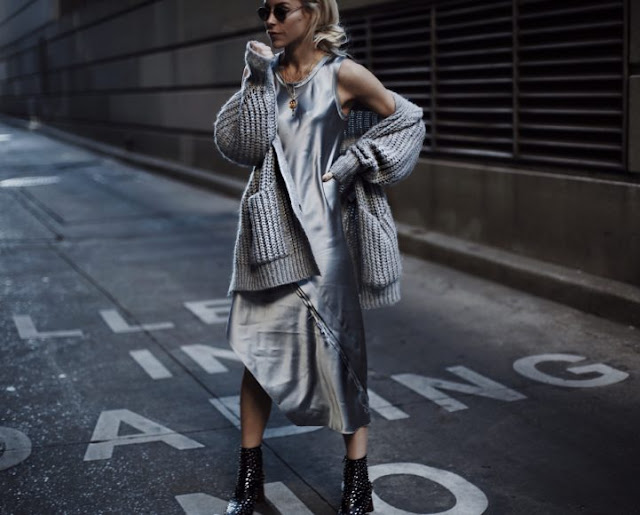 Přehoďte cardigan, trenčkot nebo křivák či bomber. Osobně nejvíc miluju zajímavý mix materiálů a struktur. Stačí vám jemné barvy tón v tónu a lesk saténu s hrubou struktorou pleteného svetru, nebo kůží. Vypadá to skvěle a havně jednoduše. K takovému outfitu už stačí přidat jen jednoduché doplňky, jemné řetízky, náramky a stylovou kabelku.