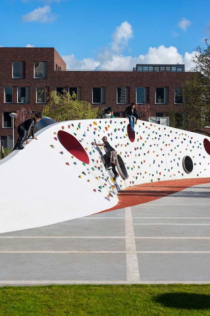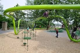 Pro větší děti, které už miniskluzavky a houpačky příliš neocení, bych si namísto všudypřítomných lanových pyramid představovala něco takového: