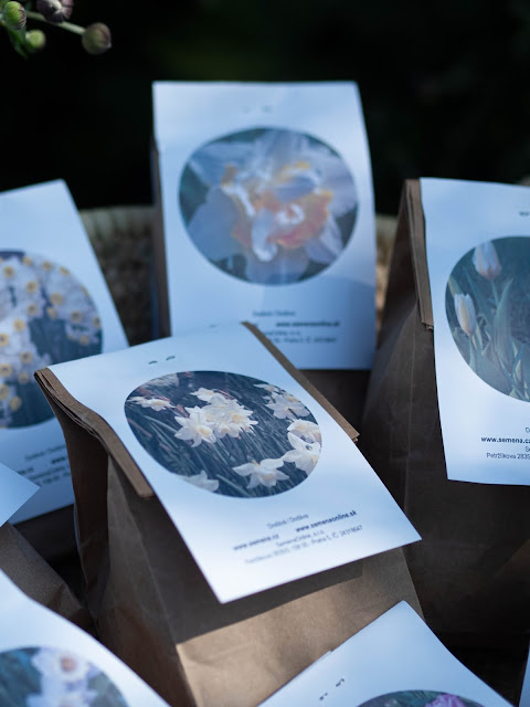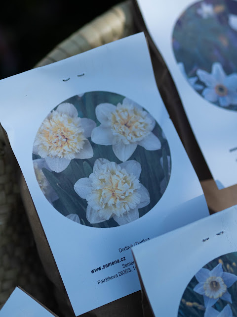Dnes mi prišiel balíček, na ktorý sa každý rok neskutočne teším... sú to pre mňa vždy Vianoce na jeseň. Nové cibuľky do záhrady sú tu a ja sa môžem pustiť do práce! Tento rok to bude hlavne o narcisoch. Dlhé roky som tieto kvety zaznávala (och, ako málo som o nich vedela!!!) a preto neboli súčasťou našej záhrady. Jediné, čo ma s nimi spájalo, bola spomienka na detstvo a starkú, ktorá ich pestovala a vždy ma potešila kytičkou. Veru som o nich vedela iba málo a myslela si, že existujú iba prenikavo žlté odrody. Toto vôbec nie je pravda - veď iba v tomto balíčku mám 6 rôznych druhov a vôbec nie žltých. Ja totiž žltú na kvetoch veľmi nemusím :-) Poďte sa ale pozrieť, aké odrody to sú. Prikladám pre vás aj link do obchodu. Ja ich mám ako vždy z osiva-semena.sk ♥