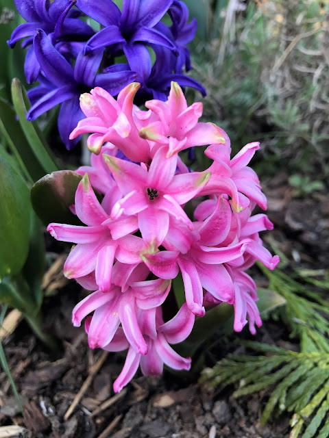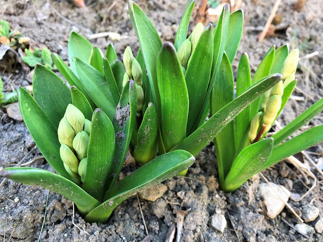 … právě rozkvétají. Mám je ráda. V zimě si občas koupím hyacint rychlený. Teď nakvétají na zahrádce. Jsou krásné, no posuďte sami…