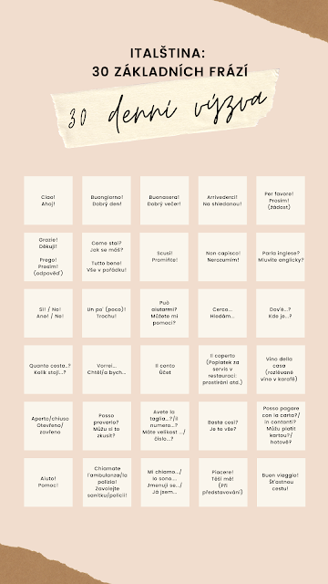 Italština – základní fráze ke stažení Zveřejněno uživatelem Životem po italsku | 22. 06. 2020 | Zde si můžete stáhnout 30 základních frází italštiny nebo rozšířenou verzi základních frází.