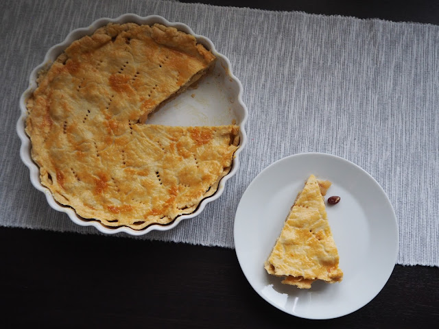 … originál receptu najdete zde. Poprvé jsem tento koláč dělala přesně podle návodu a byl moc sladký. Proto nedodržuju množství cukru a skořice, vše dávám přiměřeně a horní díl jen potřu rozšlehaným vajíčkem …