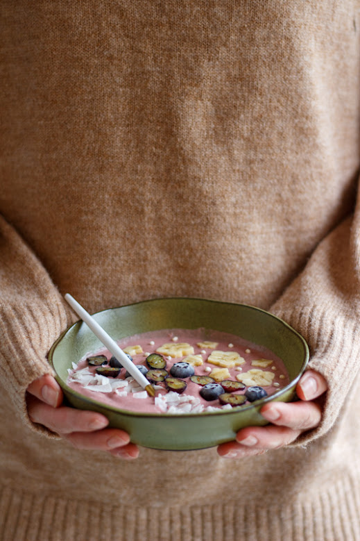 Nevím, jak vy, ale já mám ráda studené i v zimě. Ne sice venku na mrazu, takový blázen nejsem, ale doma v teple si klidně zmrzlinu nebo smoothie misku z mraženého ovoce dám. Vlastně nejradši si dávám právě takovýto ovocný krém. Zasytí, obzvlášť když si navrch přidáte třeba i trochu jogurtu a granoly, a ještě mám pocit, že jsem do sebe dostala alespoň malou porci vitamínů.