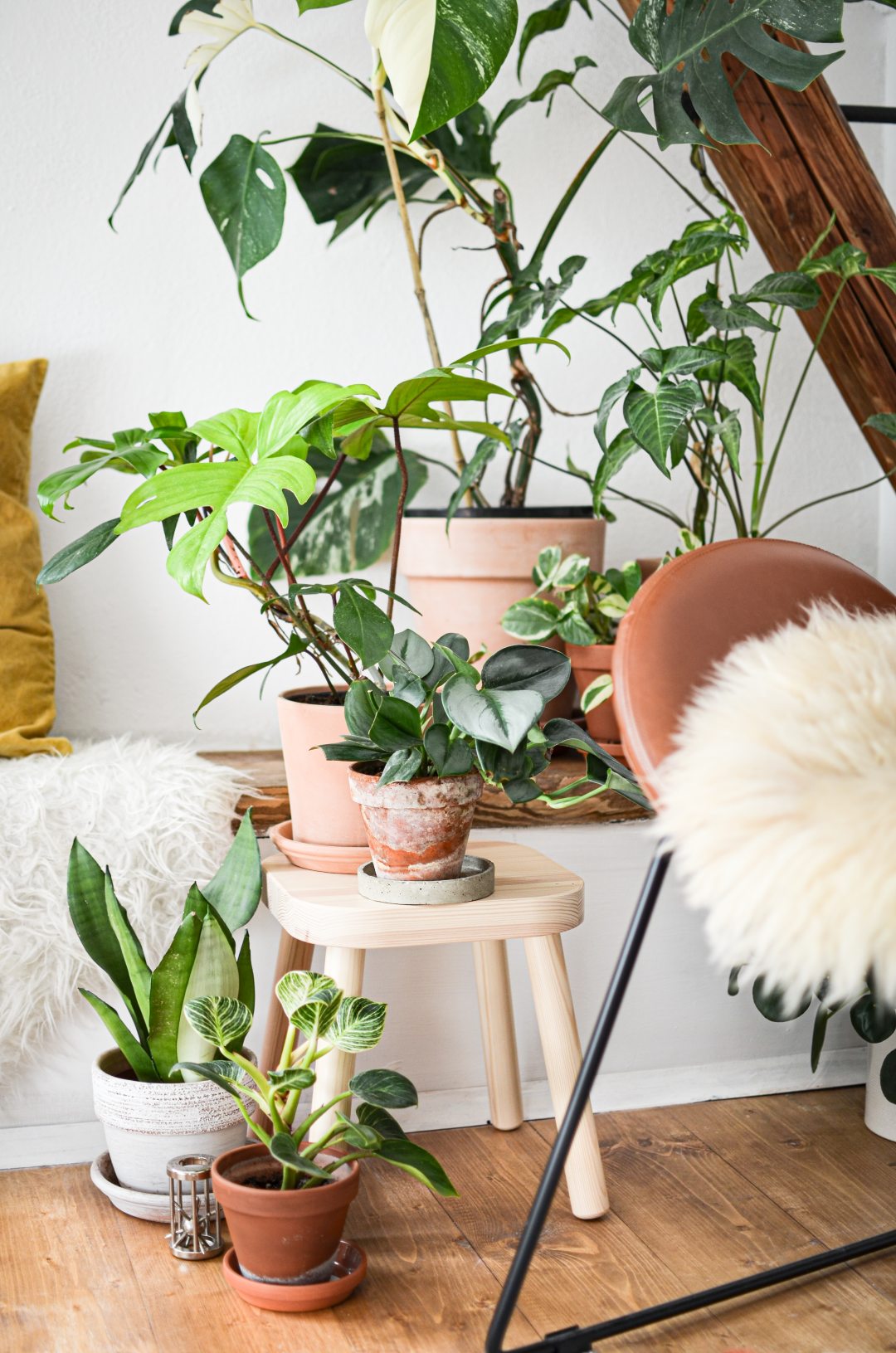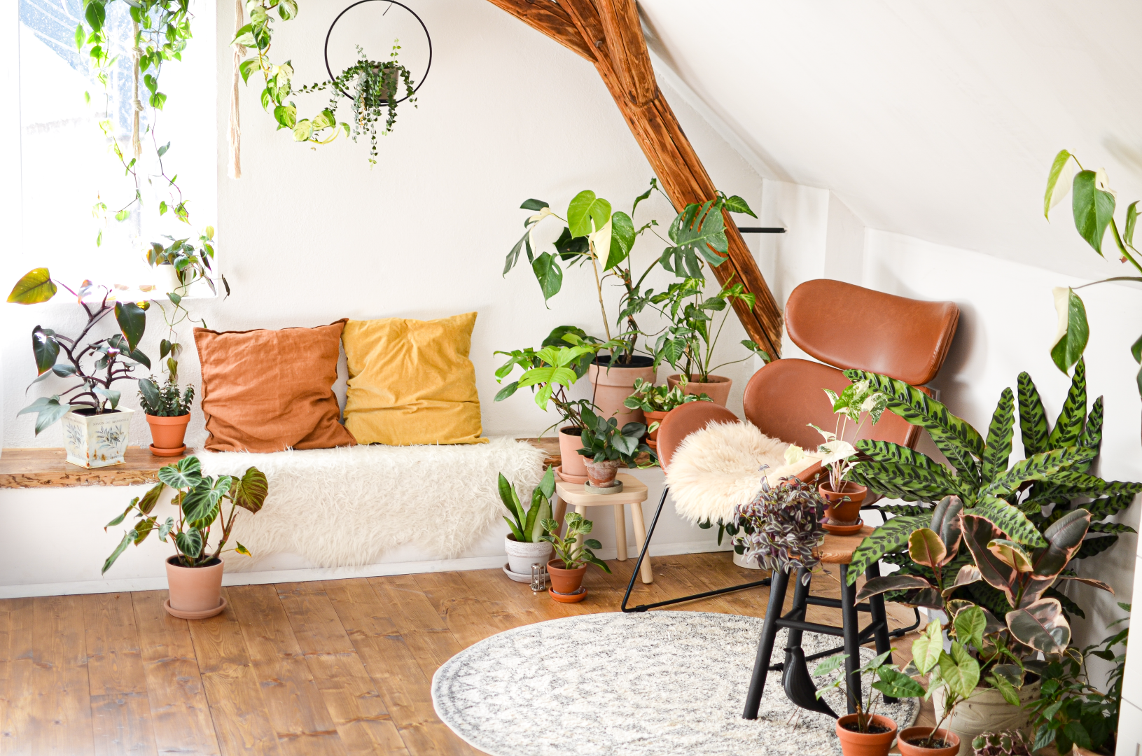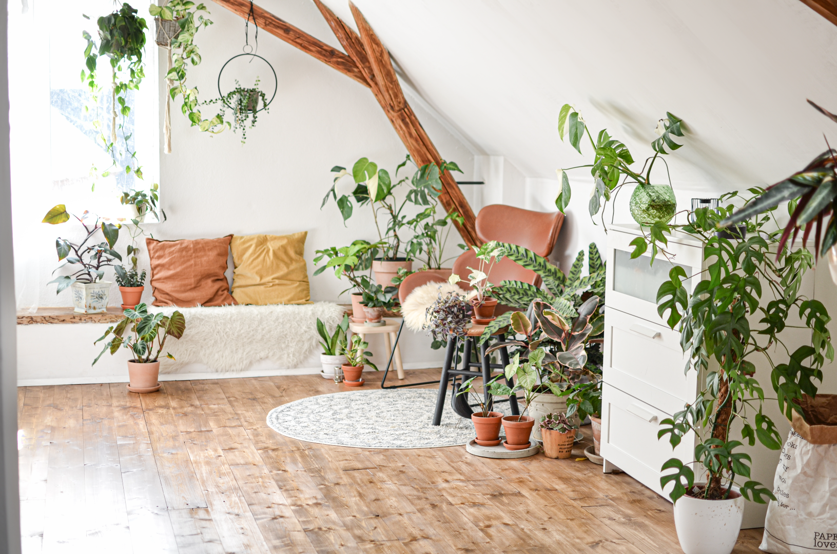 Ono to samozřejmě není jen tak, když máte velký dům. Máte sice hodně rostlin, ale ve finále v jedné místnosti vždy jen pár. Dala jsem si proto malé cvičení v rámci udržení fyzického zdraví a většinu rostlin z přízemí vynosila do ložnice. Ve školce se běhá s vajíčkem na lžíci, na vesnici po schodech s kytkama v podpaží. Možná je to až obsese, ale podle mě je pokojovka tou nejhezčí dekorací.