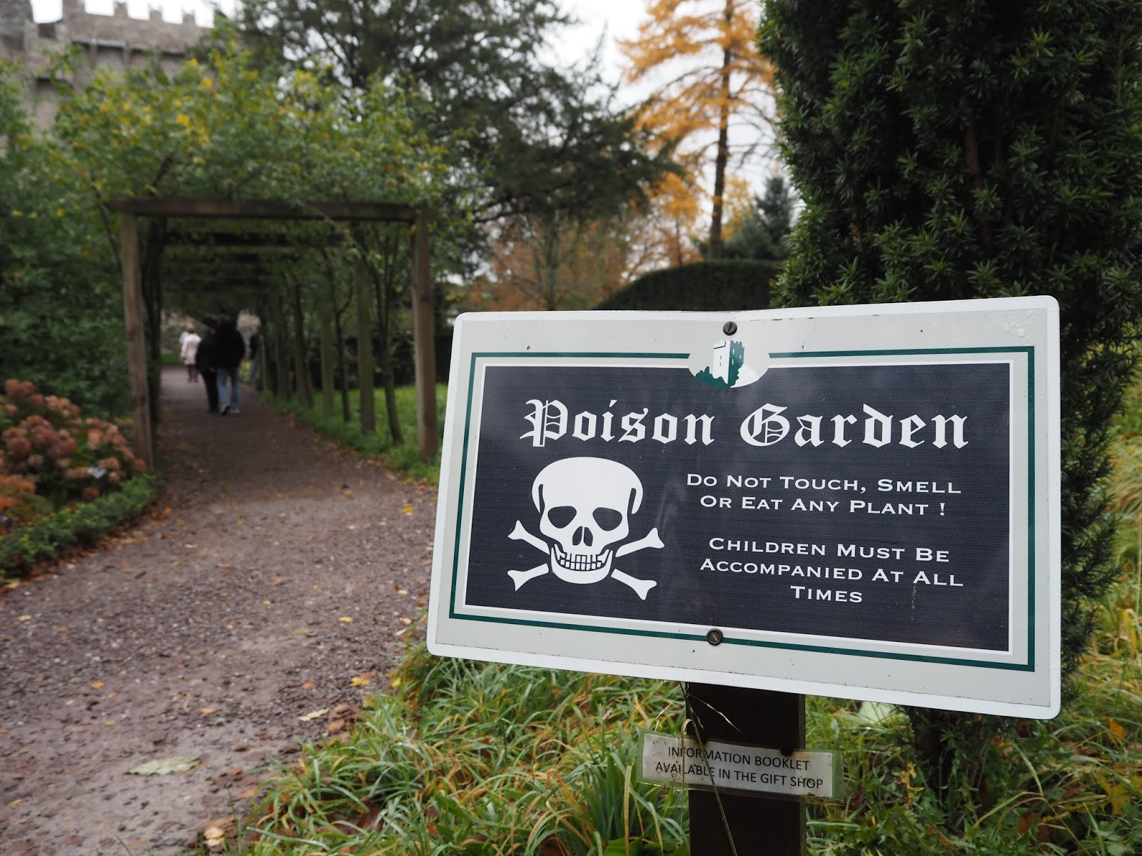 V okolí hradu se nachází nádherná a rozlehlá zahrada. Součástí této zahrady je i Zahrádka jedovatých rostlin „Poison Garden“, kde se pěstuje opium, mandragora, ricin, nebo konopí. V zahradách najdete i atrakce se zajímavými kamennými strukturami a zajímavými stromy. Je tu Druid circle, Witche’s kitchen a taky Wishing steps. Schody, které když vyjdete a něco si přejete, vám dané přání splní.
