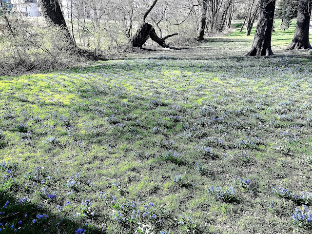 Praha 9, Podvinný mlýn, údolí Rokytky, hluboké odpoledne, v úterý, jaro, duben… ladoňky, přesněji moře ladoněk, první fialky, slunce, teplo, listy, zelená barva, tráva, pohoda…