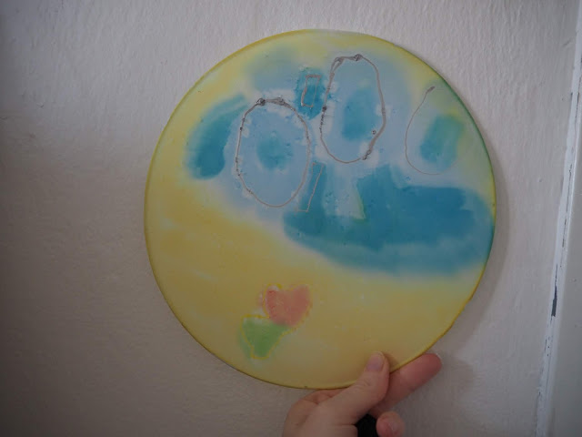 v Bertíkově škole byly v úterý jarní dílničky. Už jsme na pár akcích tohoto druhu byli a musím konstatovat, že je tam vždy fajn atmosféra. Začali jsme malováním na hedvábí - v Bertíkově režii. Ale byla jsem jako doprovod, tak proč ne. Namaloval si na hedvábné kolečko znak Dopravního podniku Ostrava. Nazvala jsem si jeho výtvor "dopravní podnik na hedvábí" ...