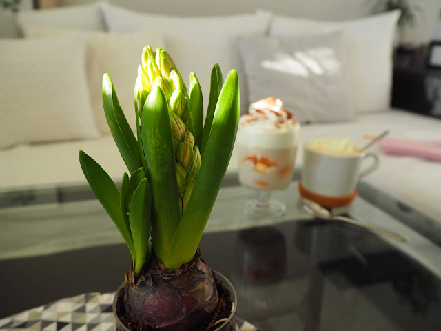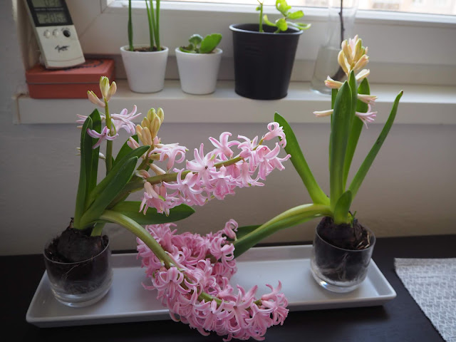... teď už jsou hyacinty odkvetlé, ale byly nádherné. Vykvetly tak, že se květy opíraly o stůl. A ta vůně!!! :-) ...