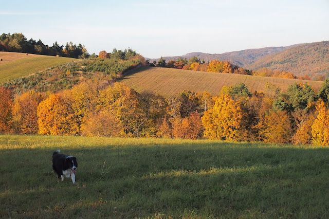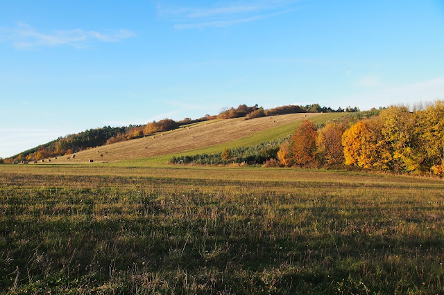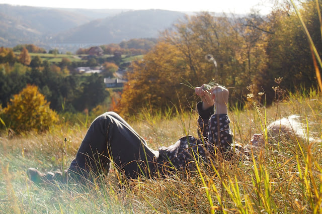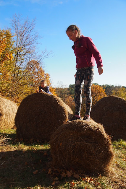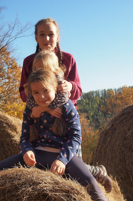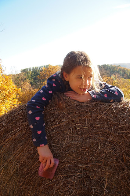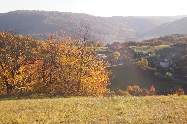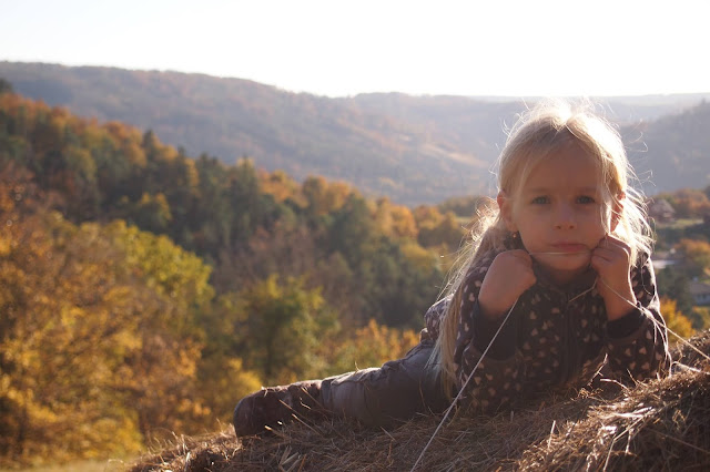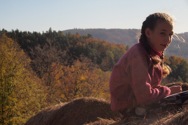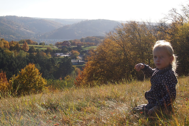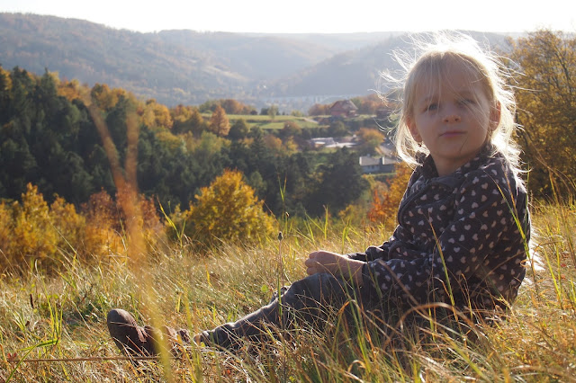 Začala mší věnovanou misiím, kde naše holky v Tišnovském kroji zastupovaly Evropské děti a pokračovala mým předobědovým focením ušitých věcí pod Květnicí. Po obědě jsme vyrazili kolem vodopádků ze Štěpánovic nahoru do kopce na nádherně vybarvené louky s dalekými výhledy. Balíky, které zaručeně nahradí všechny hřiště světa, draci, na které byl malý vítr, trocha stresu a mrčení, protože bez toho by to nešlo a domácí perník zabalený v krabičce. A taky spoustu fotek od Klárky a pár i od Terezky, protože holky to začíná bavit.