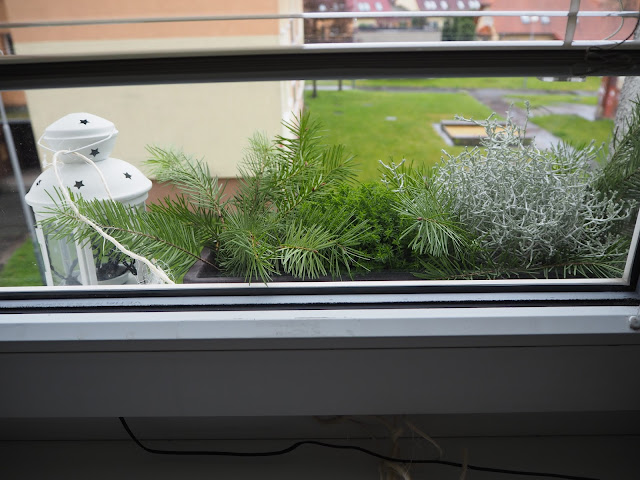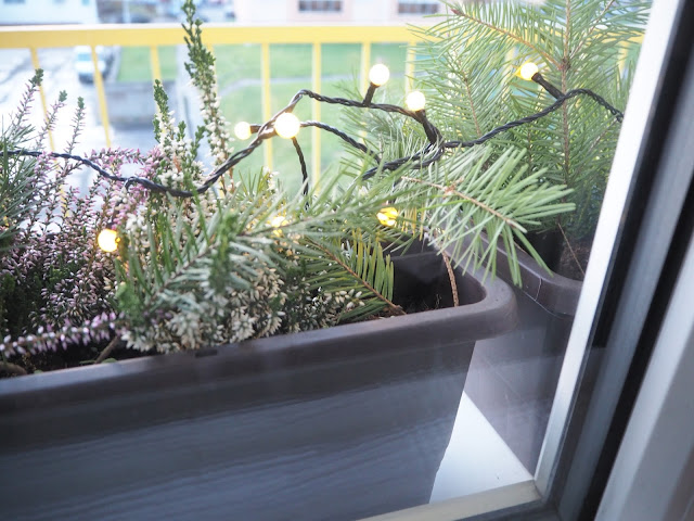 dostala jsem ze zahrady tři větve jehličí. Nazdobila jsem jimi venkovní truhlíky …