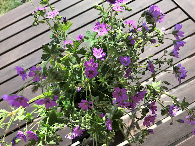 Geranium, nebo-li kakost, je často pěstovanou a rozšířenou trvalkou, která hojně roste v našich zahradách v různých barevných odstínech od bílé, růžové po fialovou či modrou. Na mé zahradě kvete kakost o něco později, v létě. Ihned za plotem však kvete krásný drobnokvětý kakost polní. Ve váze vydrží několik dní a je nezaměnitelně krásný…