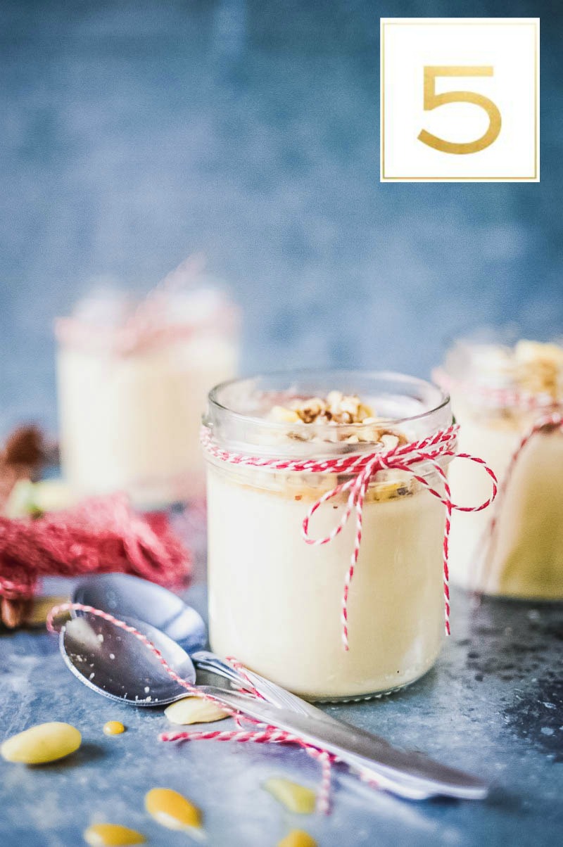 Jakmile nám želatina nabobtná, začneme ji zahřívat na mírném plameni a za stálého míchání ji rozpouštíme. Poté želatinu přidáme ke karamelové směsi a ještě chvíli mícháme na mírném plameni. Směs odstavíme a necháme asi 10 minut vychladnout. Do vychladlé směsi přimícháme postupně řecký jogurt a ručně vyšleháme dohladka. Směs plníme do formiček nebo do skleniček. Dáme ztuhnout do ledničky. Minimálně na 4 hodiny, ale nejlépe do druhého dne.