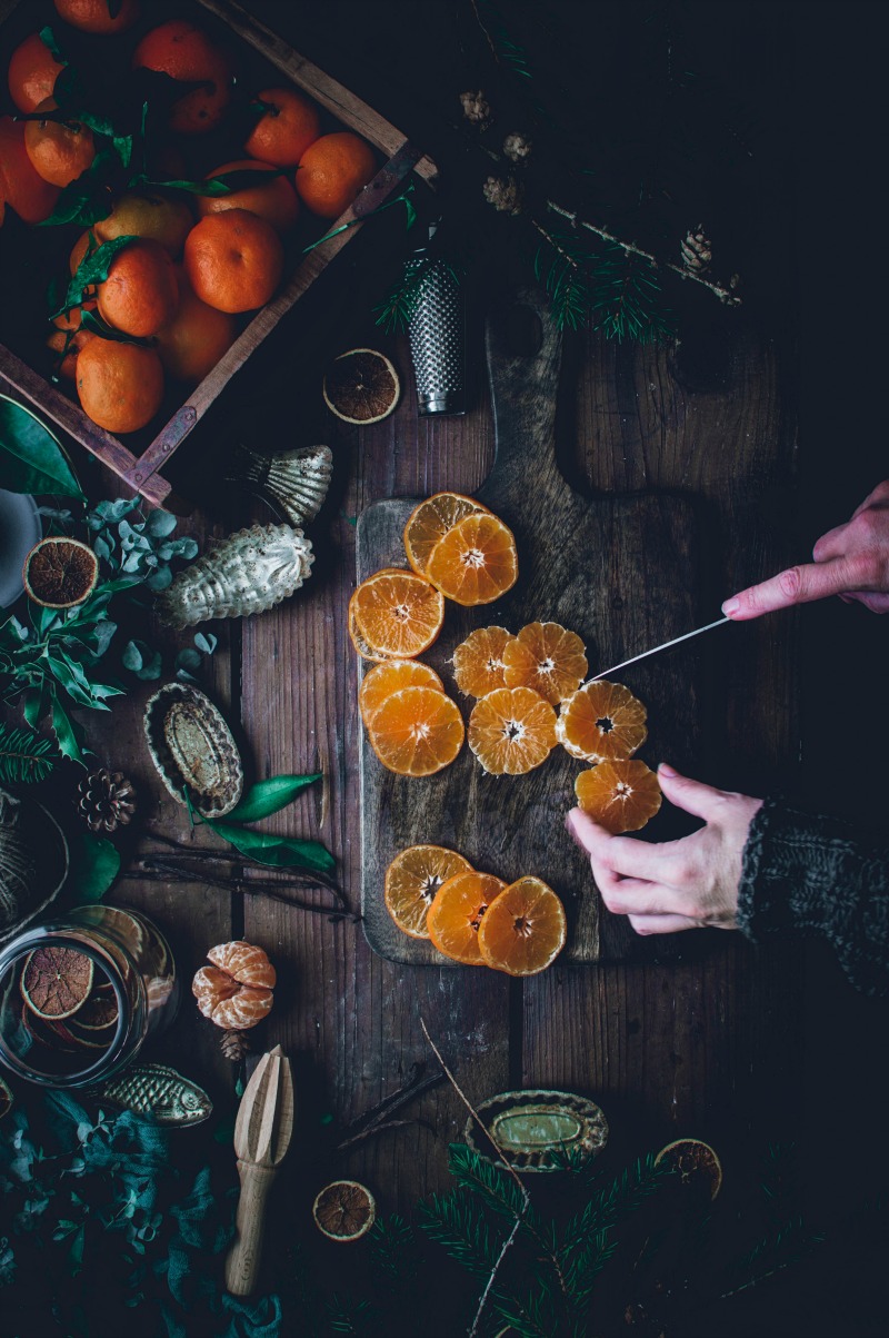 Inspirovala jsem se všemi předvánočními vůněmi a chutěmi, které mám s tímto obdobím spojené. Vůně koření, vůně mandarinek a pomerančů a také chuť brusinek. Palačinky jsem ochutila kardamomem, z brusinek jsem připravila rozvar a mandarinky jsem marinovala v kořeněné směsi z kardamomu a hřebíčku.