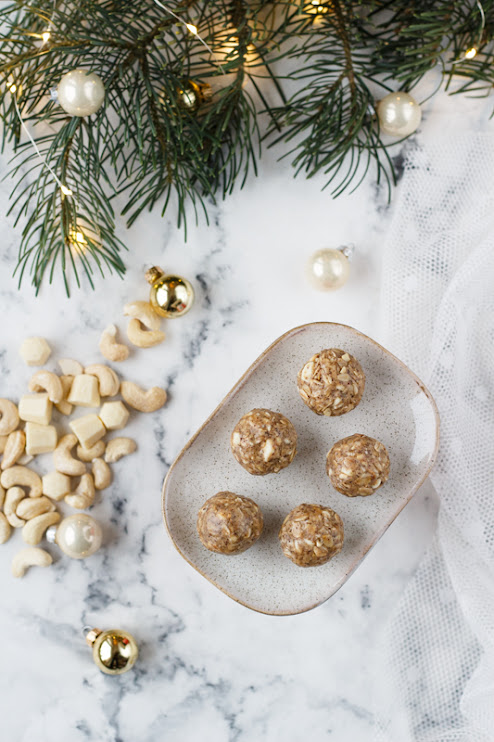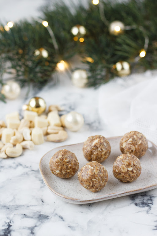 Kešu a čokoládu nasekáme nadrobno. Pokud jsou ořechové máslo a med tužší konzistence, opatrně je rozpustíme ve vodní lázni nebo v mikrovlnce. Smícháme je se solí, kávou, vločkami, ořechy a čokoládou a necháme zhruba 30 minut odležet v ledničce. Poté v rukách uválíme malé kuličky (moje měly cca 20 g) a opět necháme vychladit. Skladujeme v lednici, kde vydrží zhruba týden.
