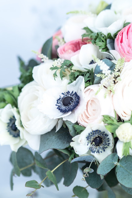 Určite si viete predstaviť, ako úžasne sa všetky tie kvety fotili… ružové a biele iskerníky, biele veternice s nádherným tmavým stredom a na doplnenie eukalyptus ♥ Nádherná jarná kombinácia ♥