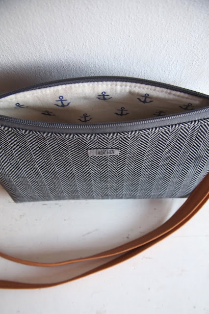 Popadnu drobné kotvy na smetanovém podkladu pod rukama mi v rychlosti vznikne kabelka, která se okamžitě stane mou srdcovkou. Karamelový popruh tomu dodal šmrnc. Ještě rychle vyfotit a pak honem pro Sáru do školky.