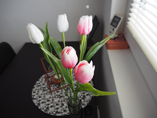 pokukuju sice po řezaných tulipánech, ale když mrzne, nemám odvahu je přihodit do košíku. Nevím, jestli by cestu mrazem z obchodu domů zvládly, tak jsem vytáhla tulipány umělé. Ony ale nejsou ledajaké, ony mají svůj příběh …