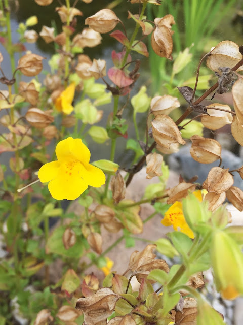 Jak je na snímcích vidět, kejklířka neomylně zaujala své místo a značně se rozrostla na břehu jezírka právě v zóně určené pro pobřežní rostliny. Po odkvětu odstříhám všechny lodyhy, aby zbytečně nenapadaly do jezírka a v zimě v něm neuhnívaly a nevytvářely dusivé plyny pro přezimující obyvatele.