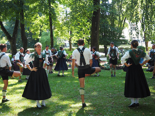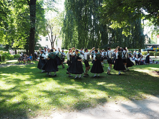 … vybírali vstupné, což jsme si nikde nepřečetli. (11 Euro na osobu). Bylo nás 5+Bertík (ten by neplatil). Neplatili jsme nikdo, nešli jsme. Naštěstí v přilehlém parku byla spousta souborů a některé z nich si zkoušeli svá vystoupení, takže jsme o rakouskou atmosféru kvůli které jsme tam šli ochuzeni nebyli …