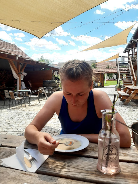 Letos byla naše jízda ve znamení náhodných i nenáhodných setkání - v Náměšti s Markétou a Jakubem na večerním hamburgru na folkáči a na ranní ňamózní snídani v úžasné kavárně Pohodička s ještě úžasnějším dvorkem. Ve Znojmě pak s mamčinou sestřenicí, která v kempu stejně jako my byla poprvé a jen na tu jedinou noc, a v kempu u Švestků v Podyjí večerní vínečko se spolužákem z výšky. Svět je malý a o náhody v něm není nouze.