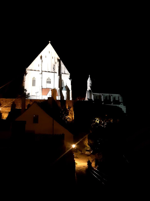 Historické Jevišovice ležící nad hlubokým údolím Jevišovky mě šokovaly svou ospalostí, zámek v Písečném naopak svou moderní rekonstrukcí za spousty peněz, tomu se až věřit nechtělo. A Znojmo mě po všech stránkách nadchlo. Nejvíce asi naše půlnoční procházka městem, na kterou jsem původně vůbec nechtěla jít. Ve dne mě pak druhý den trochu štvaly všechny nápisy a reklamy (ty nebyly potmě vidět) a hlavně auta (těch tam v noci bylo úplné minimum). Mrzelo mě jen, že mělo zrovna zavřeno Vinařství Nešetřil, které bylo nedávno nádherně rekonstruováno podle návrhu ateliéru ORA. Zato jsme viděli krásný moderní dům na břehu Dyje se zelenou střechou a zahradou v prudkém svahu, který je podle Obce architektů nejlepším rodinným domem roku 2019.