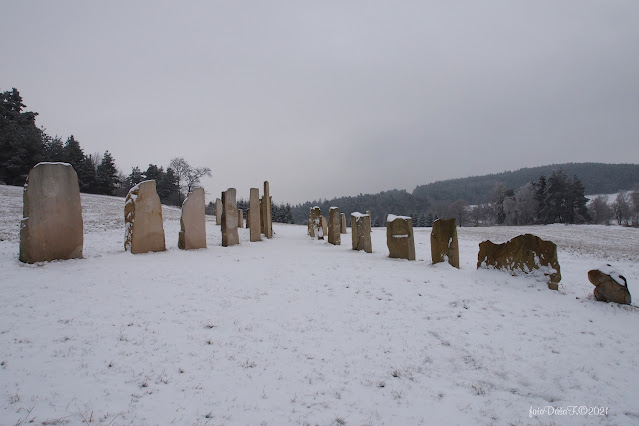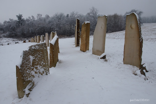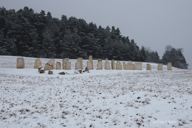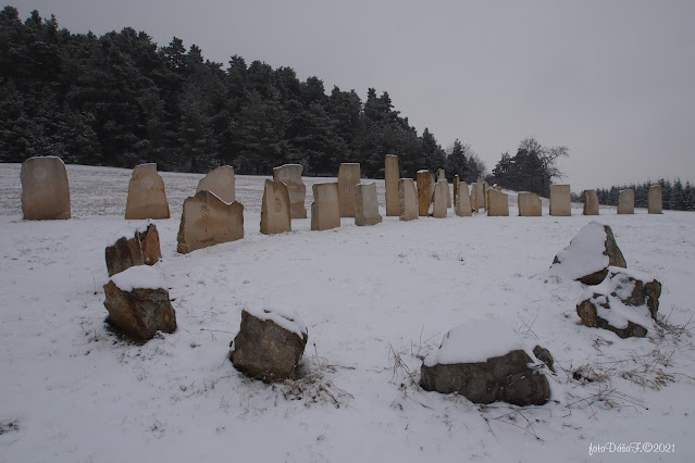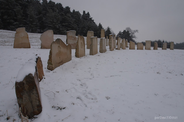 že se nejedná o kamenný kruh, ale kameny jsou postaveny do dvou spirál.