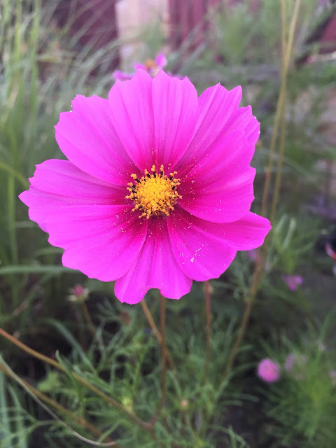 (Cosmos bipinnatus) je naprosto nenáročná letnička kvetoucí v celé škále odstínů růžové až vínové barvy hluboko do podzimu. Má jednoduchý květ, složený ze žlutého středu, který milují včely a motýli a z jednoduchých okvětních lístků. Květina krásně doplňuje letničkový záhon, dosahu výšky i 90 cm. Neuvěřitelně dobře se sama rozmnožuje vysemeněním semínek, která se tvoří při odkvětu, takže druhý rok roste a kvete již opravdu na celé zahradě, což lze korigovat odstraňováním uschlých květů během vegetační doby rostliny. Semena lze posbírat z uschlých květů a vysadit příští jaro rozhozem na určené stanoviště. Tato letnička nevyžaduje takřka žádnou péči.