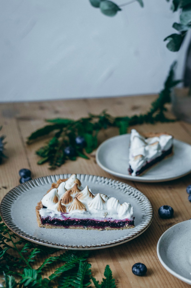 Tento koláč jsme měla na svém seznamu už dlouho. Křehký korpus, plný borůvek a nahoře nadýchaná sněhová čepice. No nezní to lákavě? Pořád jsem ale vyčkávala. Chtěla jsem totiž na jeho přípravu použít lesní borůvky. I když borůvky používám v průběhu celého roku, do koláčů a dezertů používám mnohem raději ty lesní. Jsou šťavnatější a krásně barví do fialova. Jen je komplikovanější sehnat je mimo sezónu.