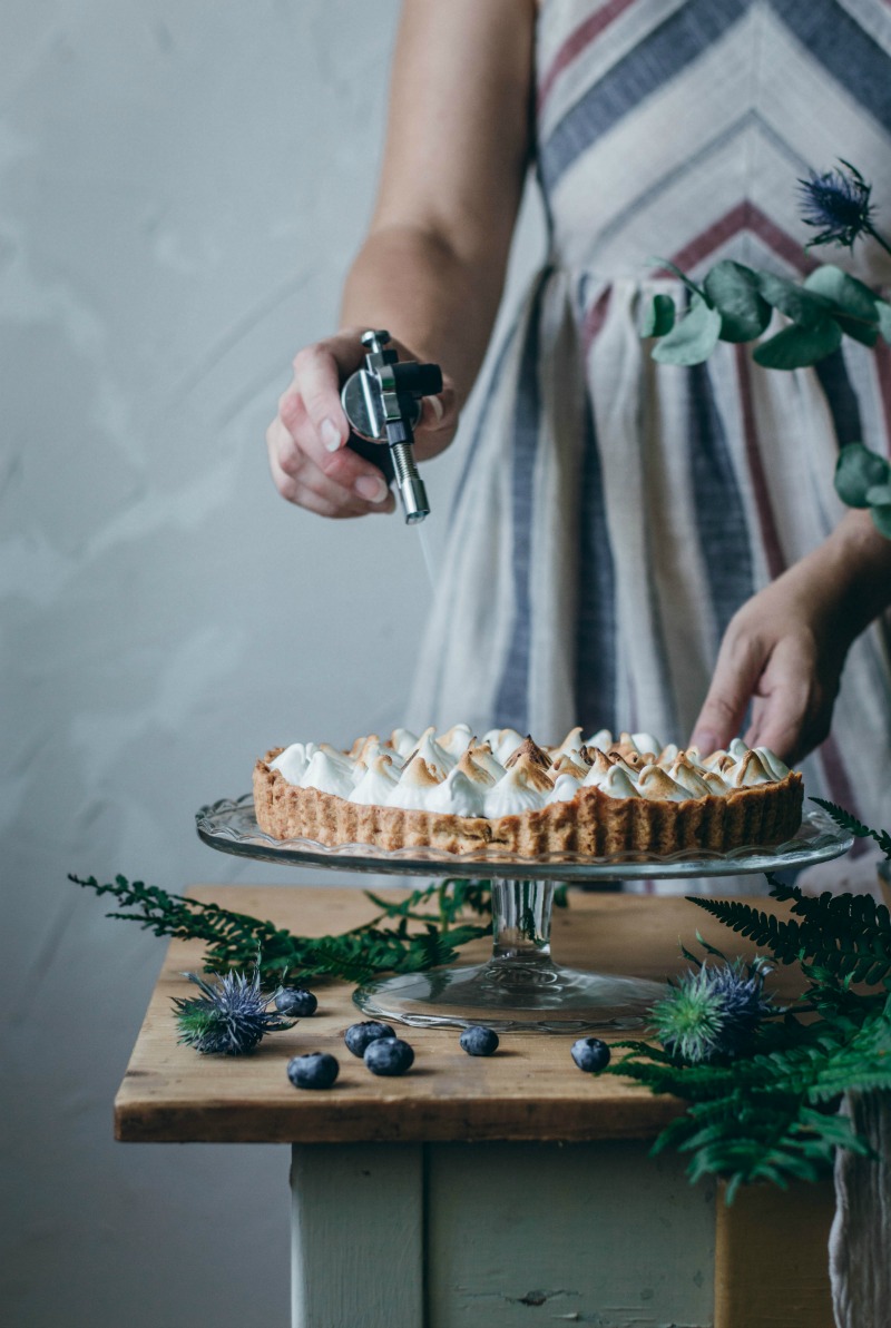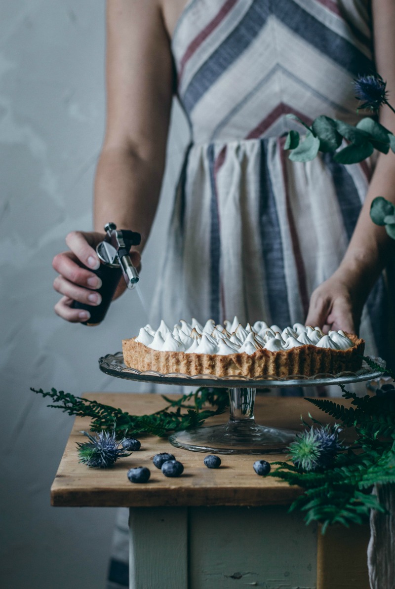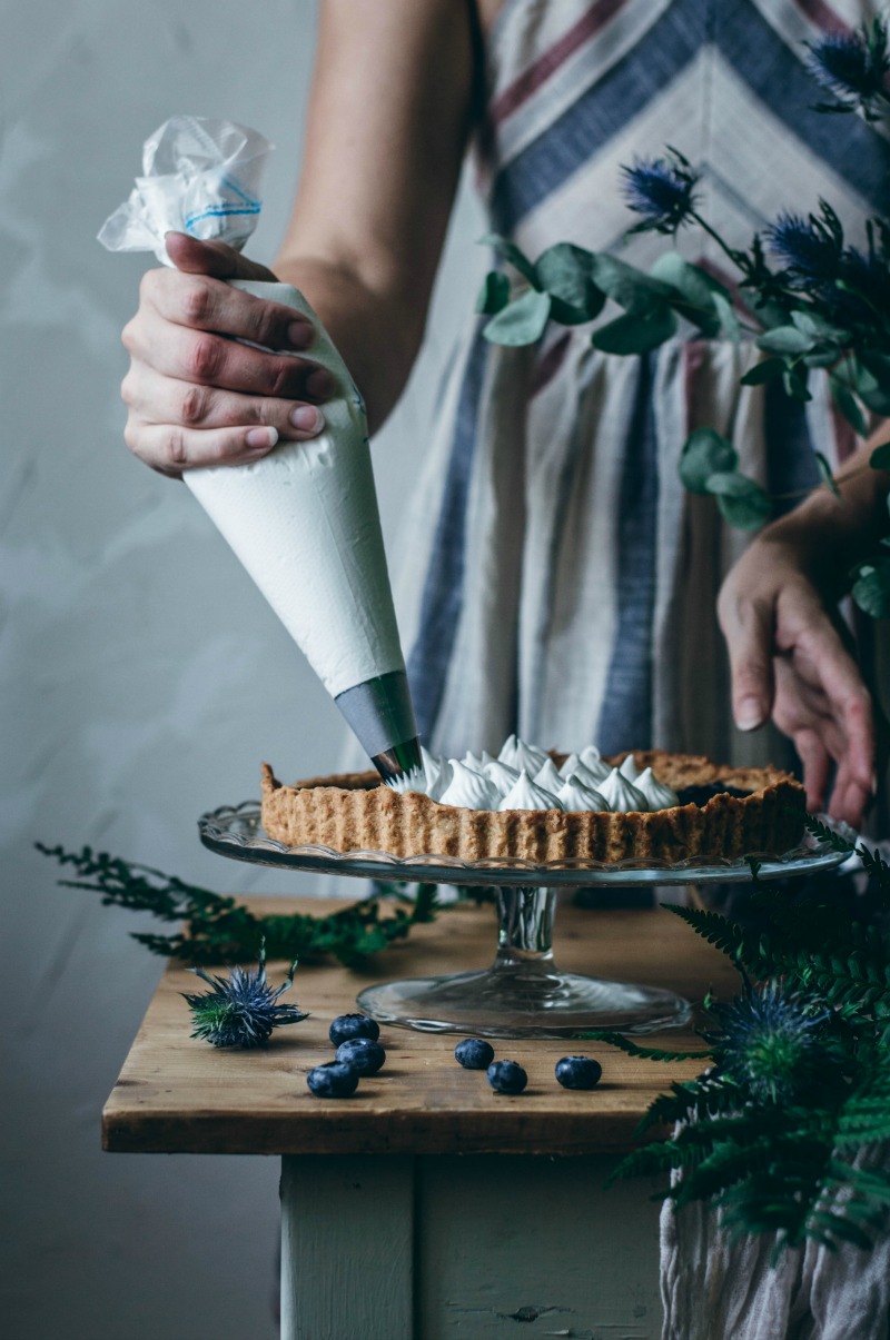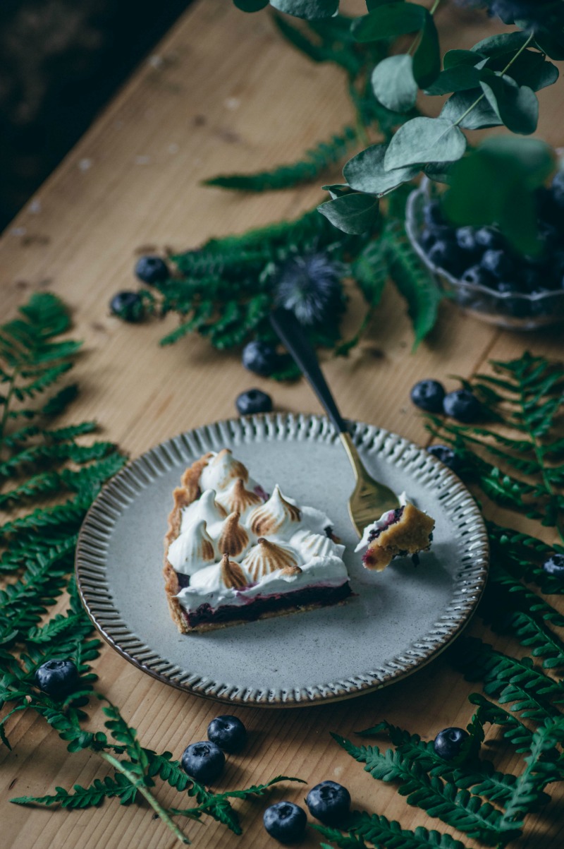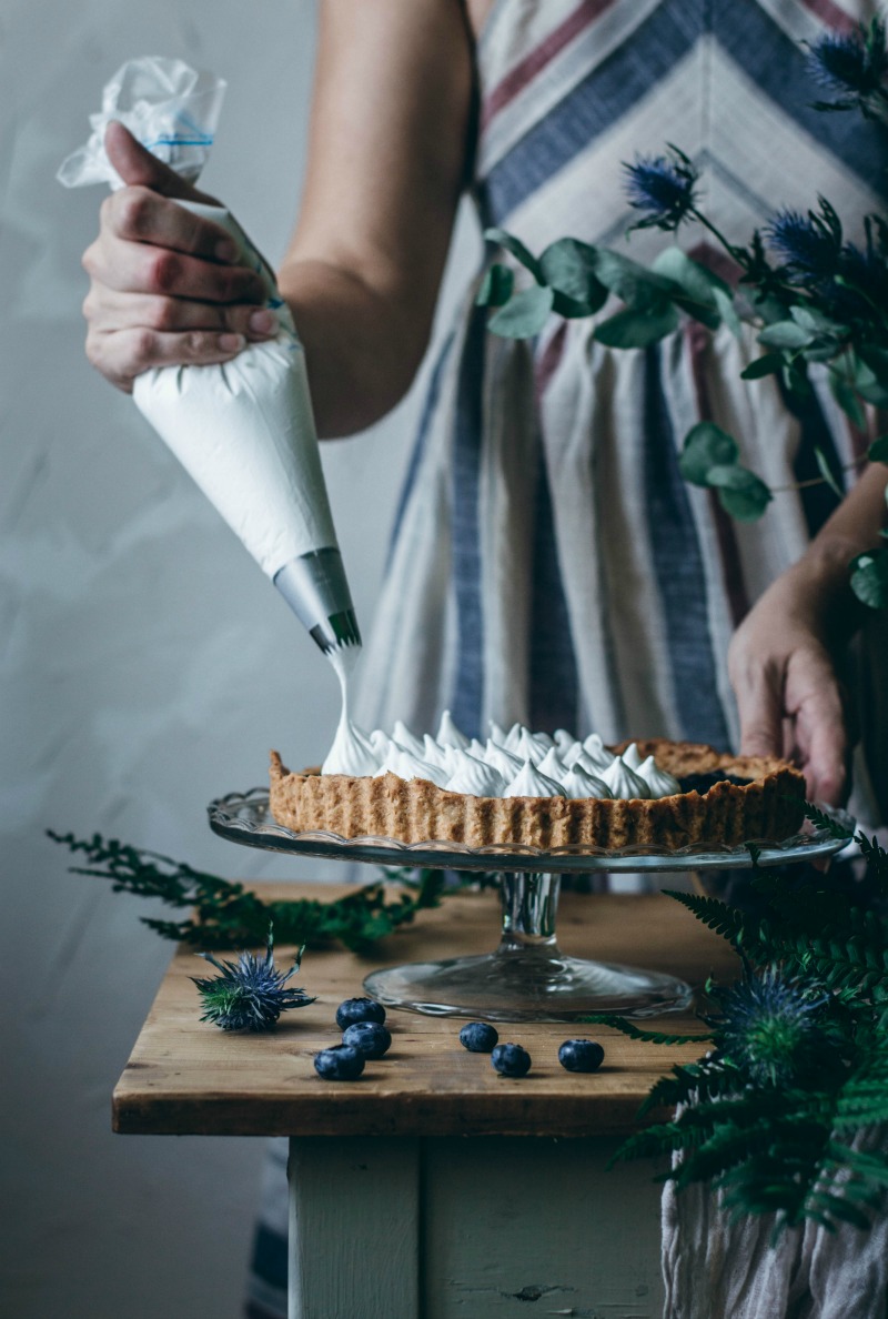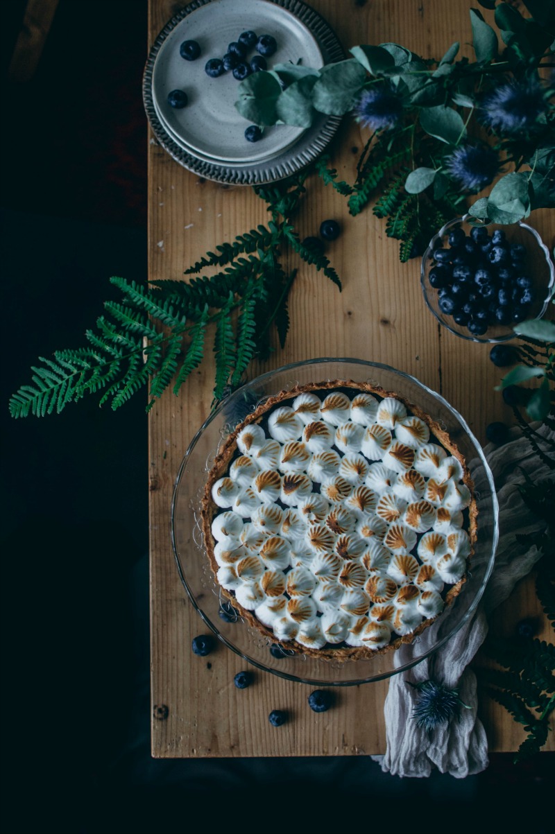 Minulý týden se mi to podařilo a hned bylo jasné, co budu péct. Protože samotné meringue je dost sladké, korpus neobsahuje téměř žádný cukr. Borůvky jsem procukrovala několika lžičkami třtinového cukru a přidala kardamom. Chtěla jsem nechat vyniknout jejich chuť v kombinaci s meringue.