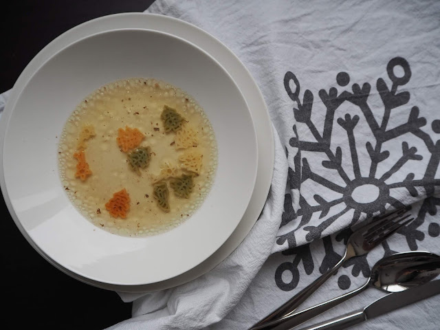 ... hovězí vývar jsem samozřejmě znala. Spíše mě překvapily přílohy - opečené brambory - rösti, špenát, smetanový křen, pažitková omáčka a jablka s křenem. A když mám chuť, tak si tento kulinářský zážitek čas od času doma připomínám. Minulou neděli jsme měli s menším rozdílem náš domácí Tafelspitz na oběd. Polévka se zimními těstovinami. Originál je s celestýnskými nudlemi ...