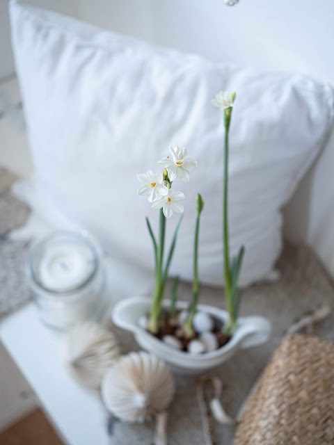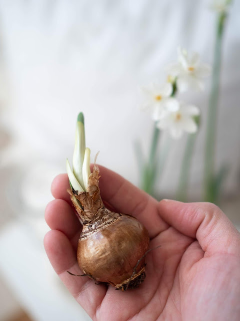 Po odkvitnutí ich už ďalej nepolievame. Rovnako ako narcisy na záhrade, aj tieto necháme zožltnúť a až potom ich zrežeme. Skladujeme ich na suchom, tmavom a chladnom mieste. Takto pripravené cibuľky môžete zasadiť na záhradu alebo použiť opäť počas zimných mesiacov doma.