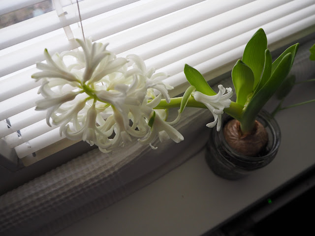 … a nebýt venku ty mrazy, tak jdou hyacinty za okno. Jsou tři a provoní opravdu celý byt. Jinak z nich mám ale radost 😉 …