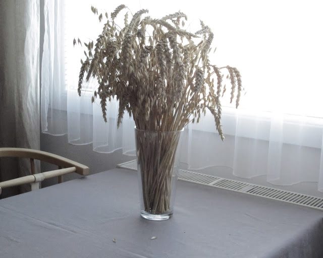 ...takhle vypadá v detailu léto u nás doma. Vytáhla jsem schované obilí z loňska, bylo mi líto ho vyhazovat a letos znovu někde škubat. Je to vděčná dekorace a má prostě kouzlo (i na poli ;-D). A ze zahrádky partnerovy mamky mám tyto dekorativní bodláky, které vždy obdivuji u Marcelky. Hezky barevně ladí k mým "bylinkovým" svícnům. Svíčky teď ale často nezapaluju (máme doma teploučko i tak ;-D). A leták z Nily se mi natolik líbí, že ho mám vystavený od začátku prázdnin, můžu na něm oči nechat (občas mi stačí opravdu málo ;-D)...
