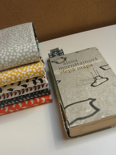 A aby byla motivace ještě větší a taky aby kniha neutrpěla ještě víc než s mým mužem na vodě, ušila jsem si na ni obal. A k tomu rovnou pět dalších, do sady. Jak jinak než z Lotta látek..
