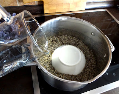 Kvietky zalejte vodou. Množstvo vody a kvietkov je ľubovoľné, ale radšej viac kvietkov ako vody, aby bol hydrolát čo najviac koncentrovaný.