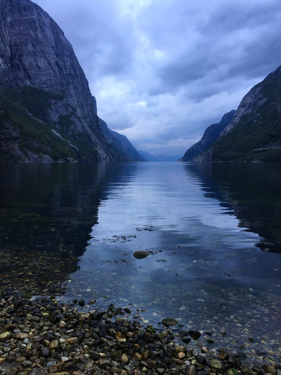 Když jsem vyfotila tuhle fotku, ihned jsem Martinovi slíbila, že ji použiju jako úvodní k článku o Lysebotnu. Přišla mi totiž dokonalá (Jako z National Geographic! :D) a perfektně vystihuje zdejší atmosféru.